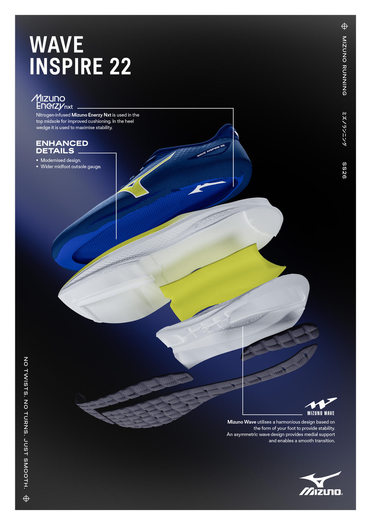 Denne generasjonen av Wave Inspire-serien er utviklet for å gi en mykere overgang, bedre energiretur og stabil støtte uten at skoen føles tung. Resultatet er en løpesko som både nybegynnere og erfarne løpere raskt vil kunne omtale for sin nye favoritt.
